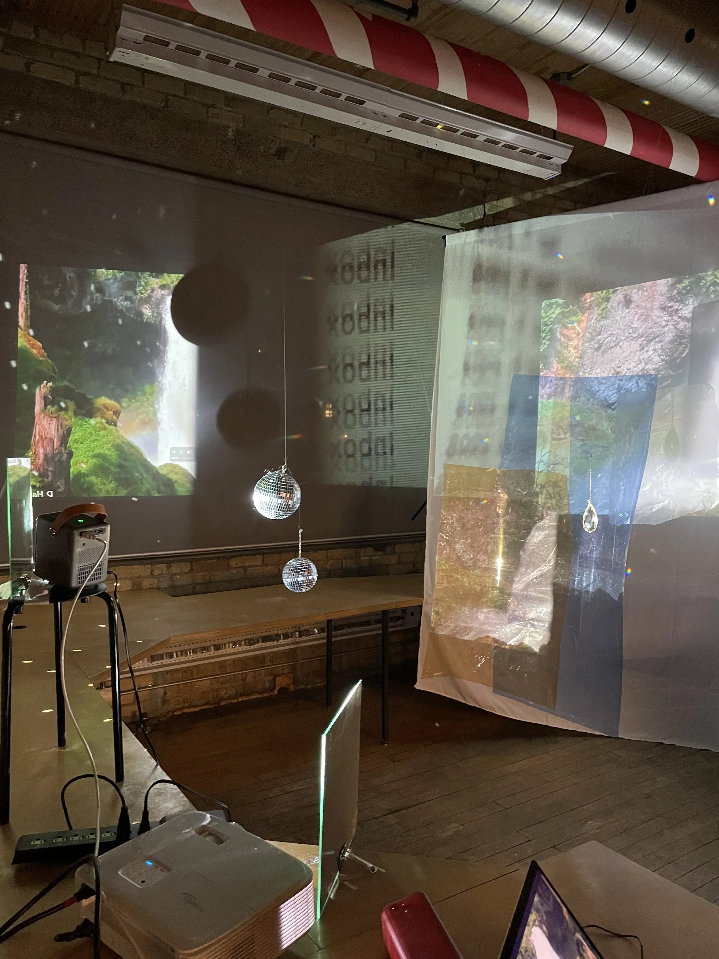 “What can I help with?” explores the inner workings of artificial intelligence through an immersive installation that calls attention to the ways AI both technologically and culturally remixes, distorts, and generates digital content. Curated human and AI made media is projected through a series of physical obstacles that distort, filter, refract, and diffuse light. In doing so, “What can I help with?” offers a tangible metaphor for the network’s layers of data processing, all while reflecting on the design decisions made by its large corporate makers.